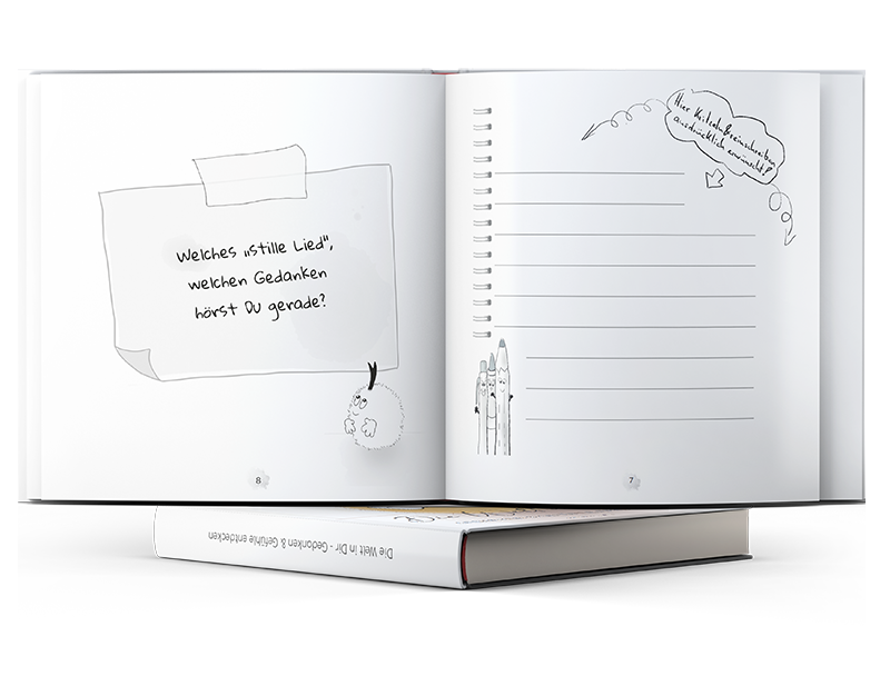 Mit Fragen, die Euch liebevoll ins Gespräch bringen sowie Raum für eigene Gedanken, Zeichnungen und kleine Momente.